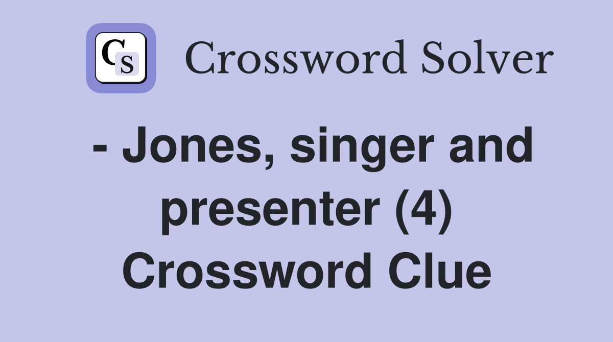 Jones singer and presenter (4) Crossword Clue Answers Crossword