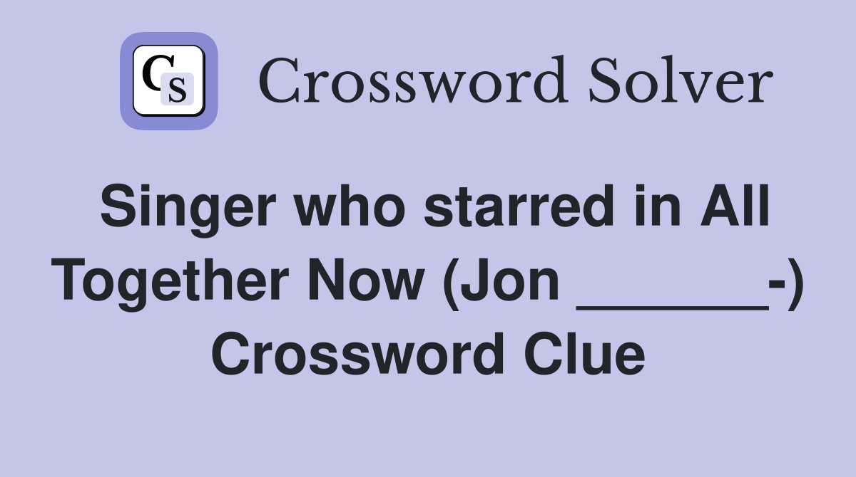 Singer who starred in All Together Now (Jon ) Crossword Clue