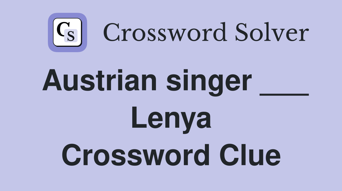 Austrian singer Lenya Crossword Clue Answers Crossword Solver