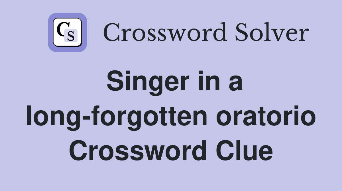 Singer in a long forgotten oratorio Crossword Clue Answers