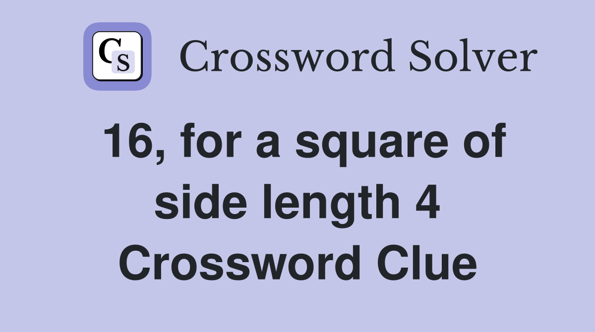 16 for a square of side length 4 Crossword Clue Answers Crossword