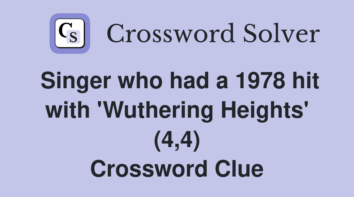 Singer who had a 1978 hit with Wuthering Heights (4 4) Crossword