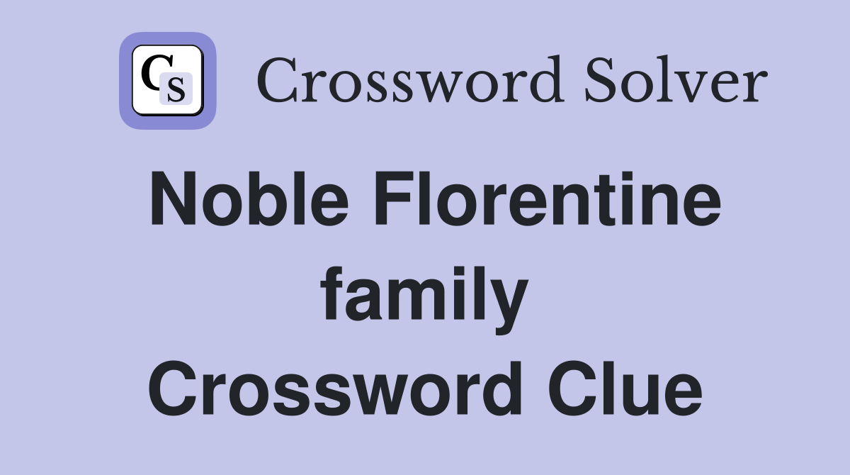 Noble Florentine family Crossword Clue Answers Crossword Solver