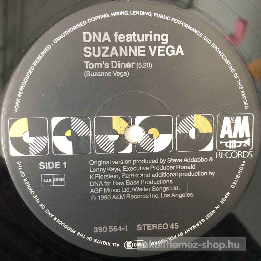 DNA Featuring Suzanne Vega Toms Diner EU Bakelit lemez shop