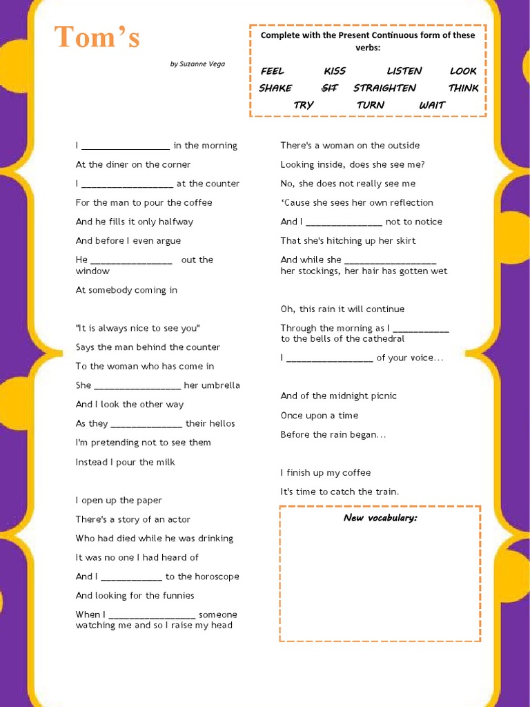 Toms Diner by Suzanne Vega Present Continuous PDF