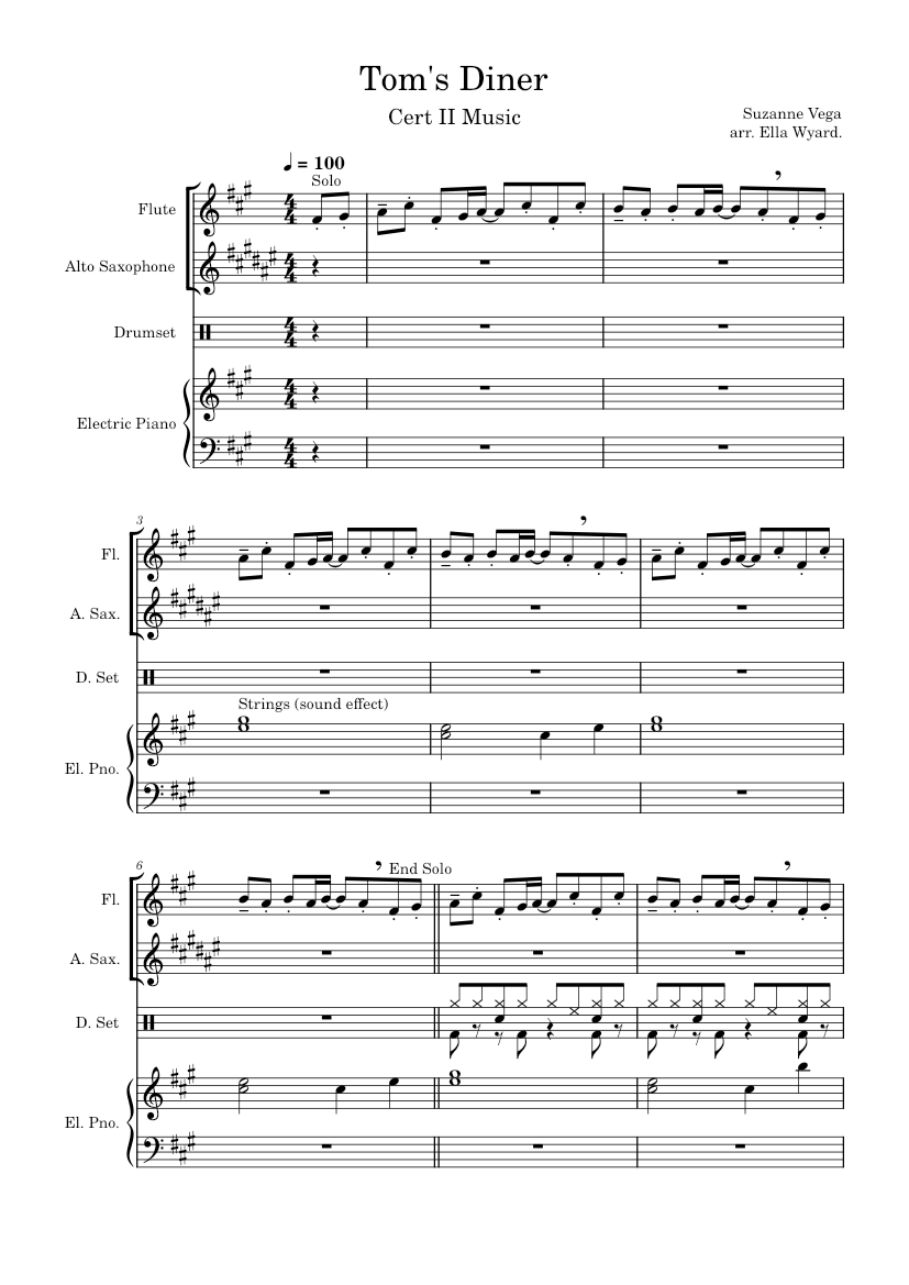 Tom #39 s Diner Suzanne Vega Sheet music for Piano Flute Saxophone alto