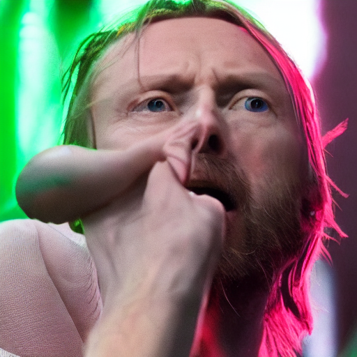 Thom Yorke (lead singer of Radiohead) portrayed as Stable Diffusion