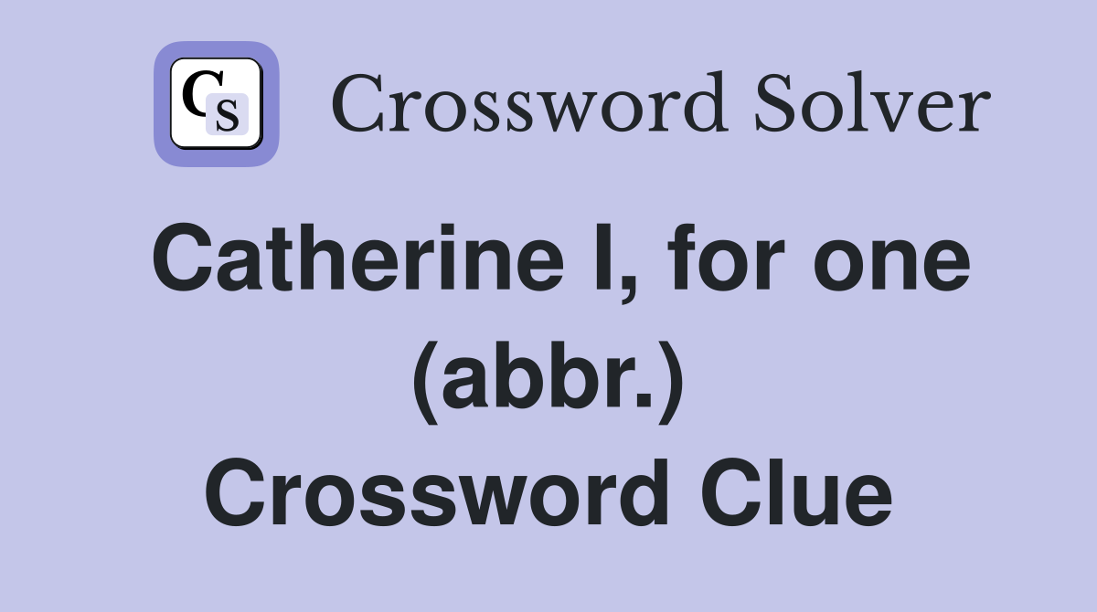 Catherine I for one (abbr ) Crossword Clue Answers Crossword Solver