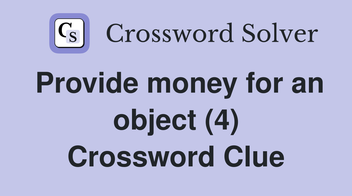 Provide money for an object (4) Crossword Clue Answers Crossword Solver