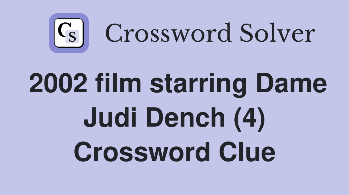 2002 film starring Dame Judi Dench (4) Crossword Clue Answers