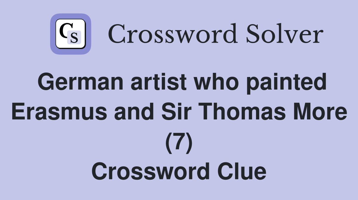 German artist who painted Erasmus and Sir Thomas More (7) Crossword