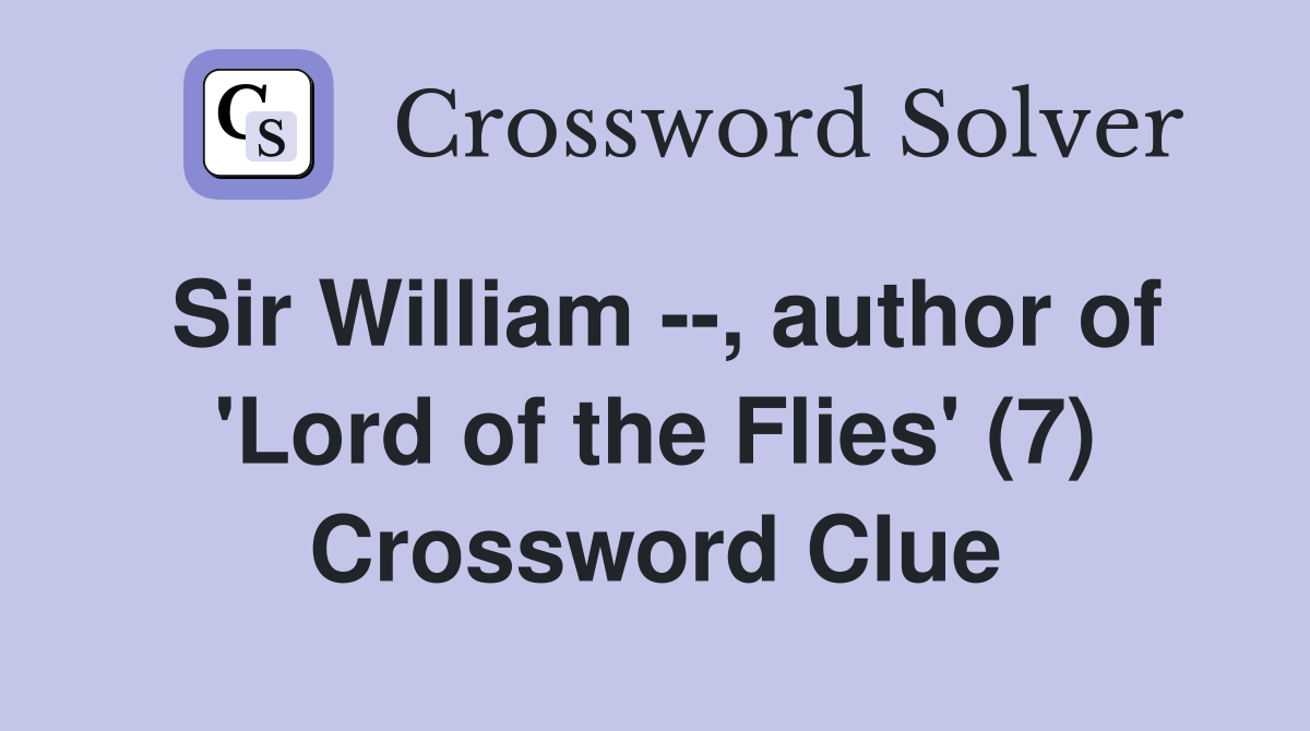 Sir William author of Lord of the Flies (7) Crossword Clue