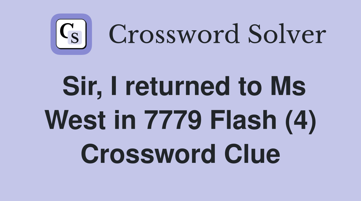 Sir I returned to Ms West in 7779 Flash (4) Crossword Clue Answers