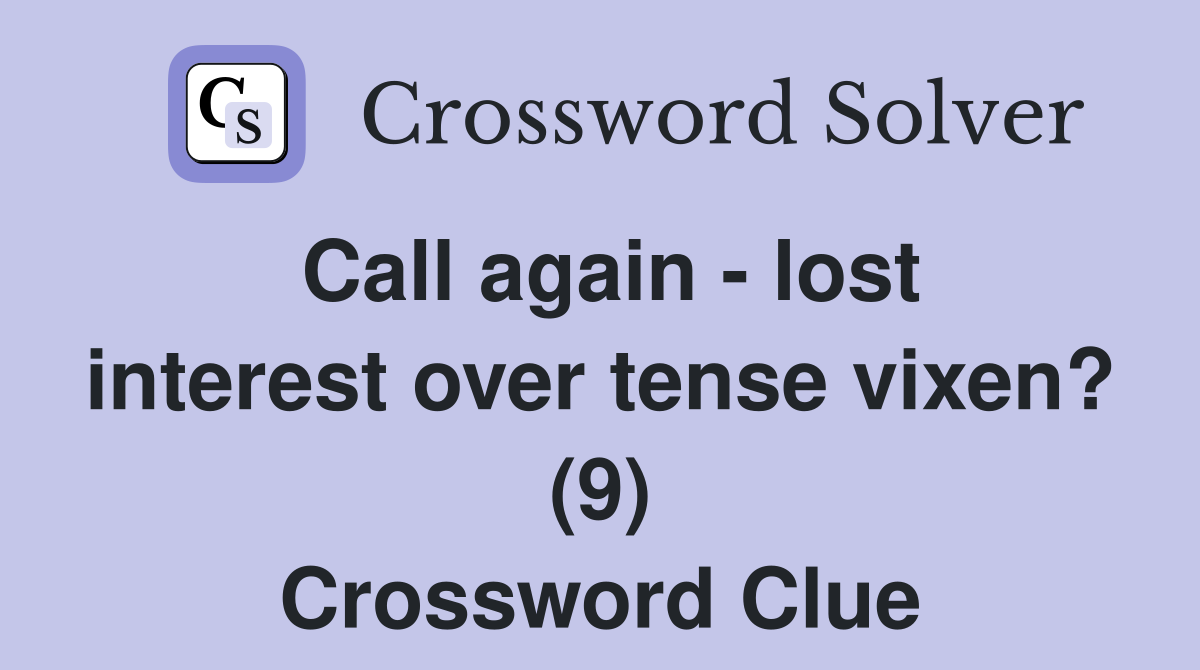 Call again lost interest over tense vixen? (9) Crossword Clue