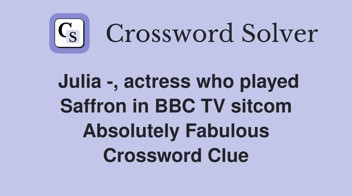 Julia actress who played Saffron in BBC TV sitcom Absolutely