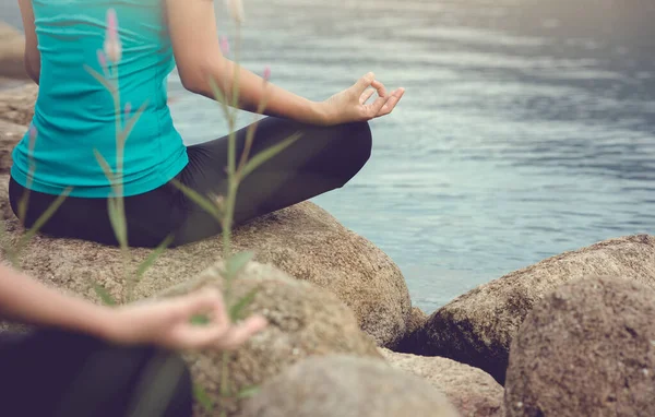 Young woman practicing yoga and meditate in the lotus pose outdoor