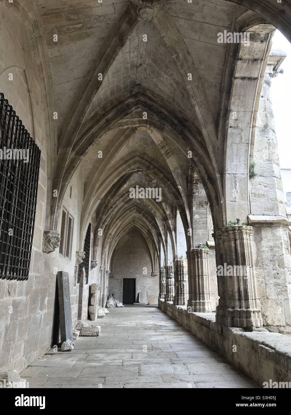 Huge Old Medieval Stone Catholic Church in Cherbourg France Stock