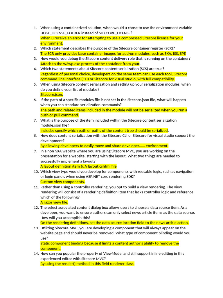 Sitecore 10 Certification Study Questions and Answers Graded A