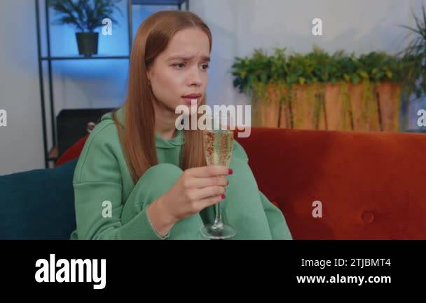 Sad Depressed Young Woman Girl Suffers from Unrequited Love Drinking