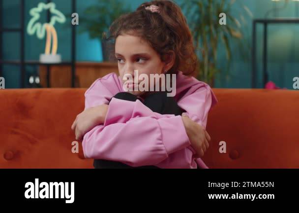 Sadgirl child kid sitting at home looks pensive of unrequited