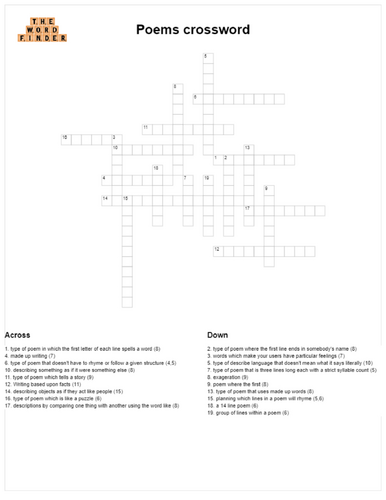 Poetry crossword Teaching Resources