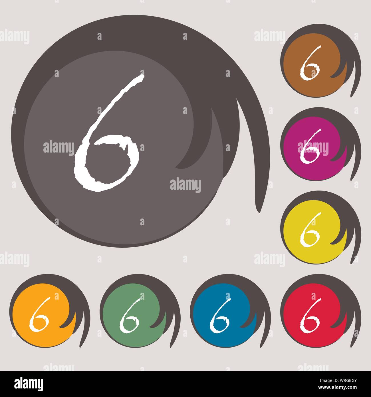 number six icon sign Symbols on eight colored buttons Vector Stock