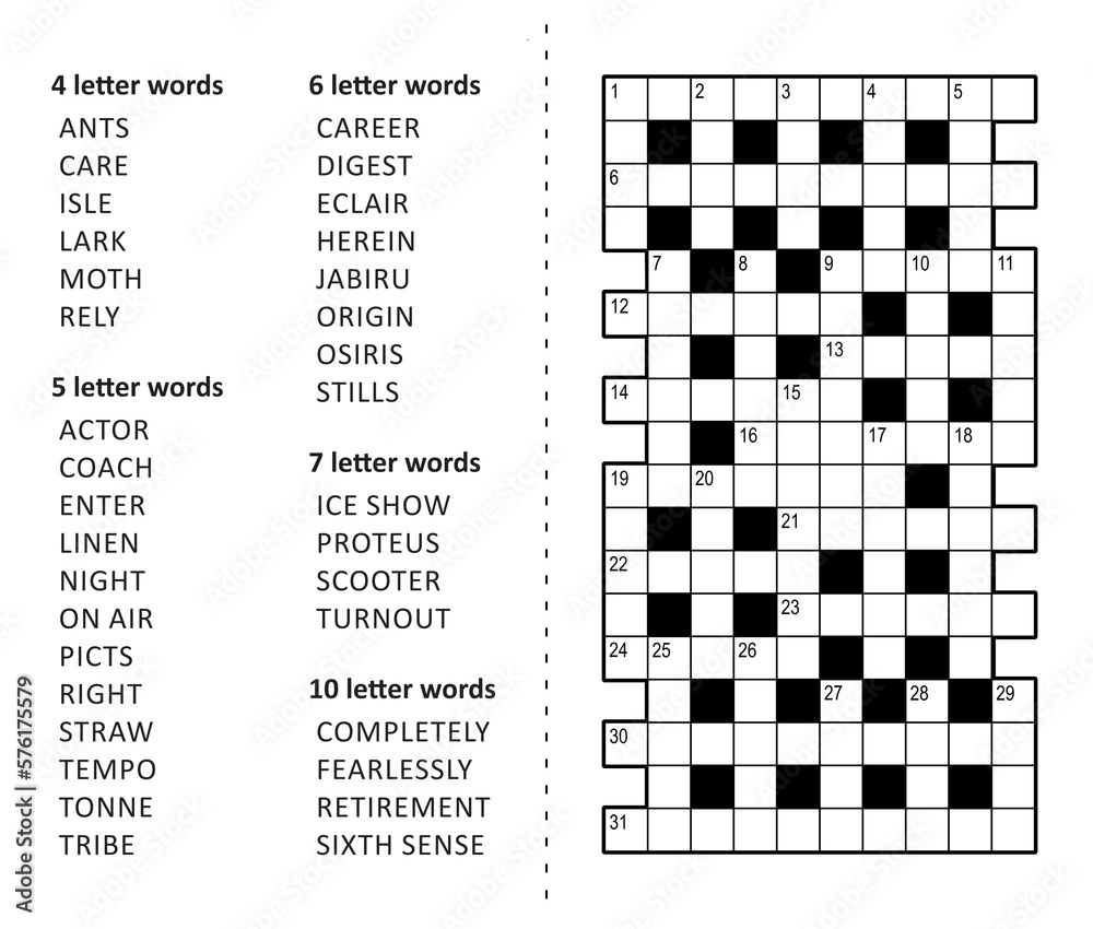 Illustration Stock Crossword puzzle game: fill in the blanks with the