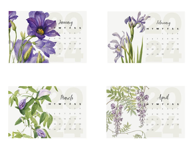 2024 MINI Size Desk Calendar With Numeric Calendar Flower or Etsy UK