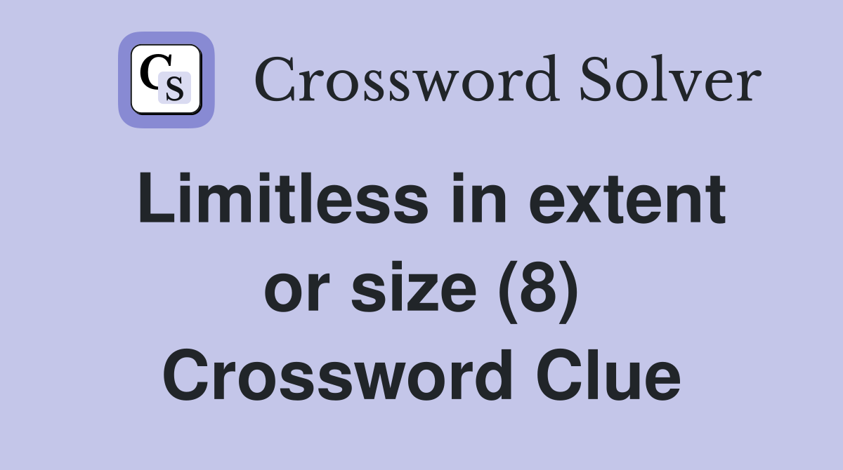 Limitless in extent or size (8) Crossword Clue Answers Crossword Solver