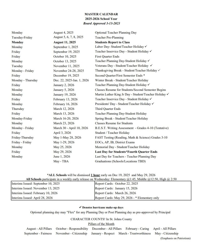 St Johns County Schools Calendar 2025 2026 SJCSD Calendar