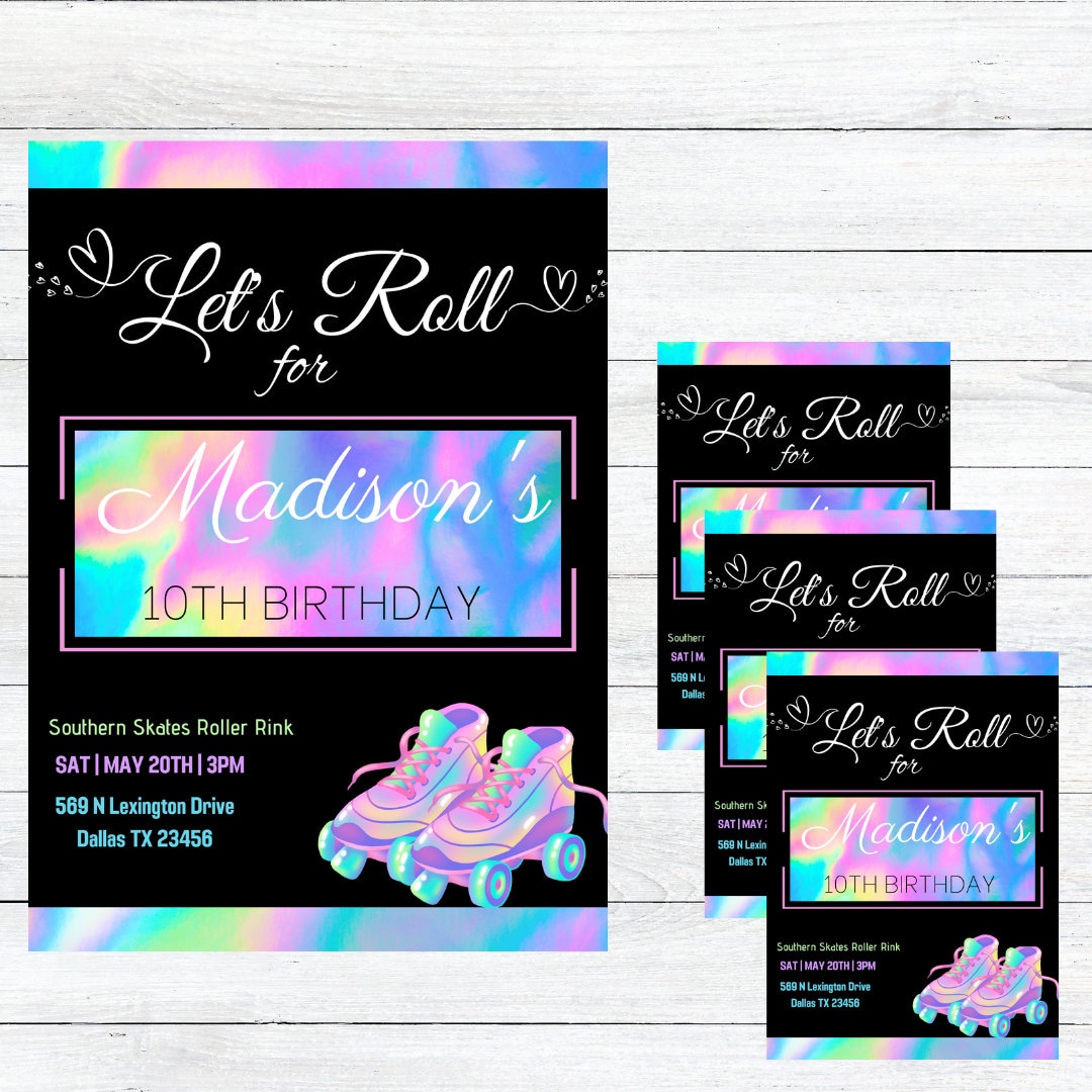 Roller Skating Birthday Invitation Editable Roller Skate Invitation