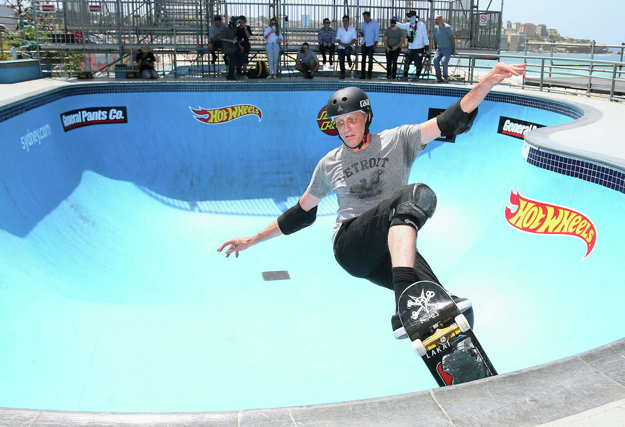 Skateboarder Tony Hawk brings his moves to a Connecticut skatepark