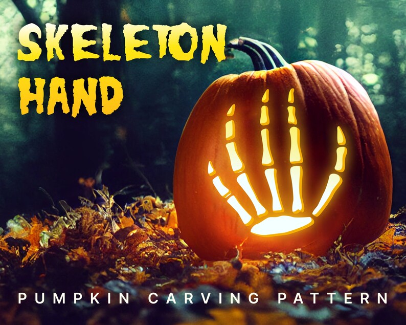 Skeleton Hand Printable Pumpkin Carving Pattern Rattle Some Etsy
