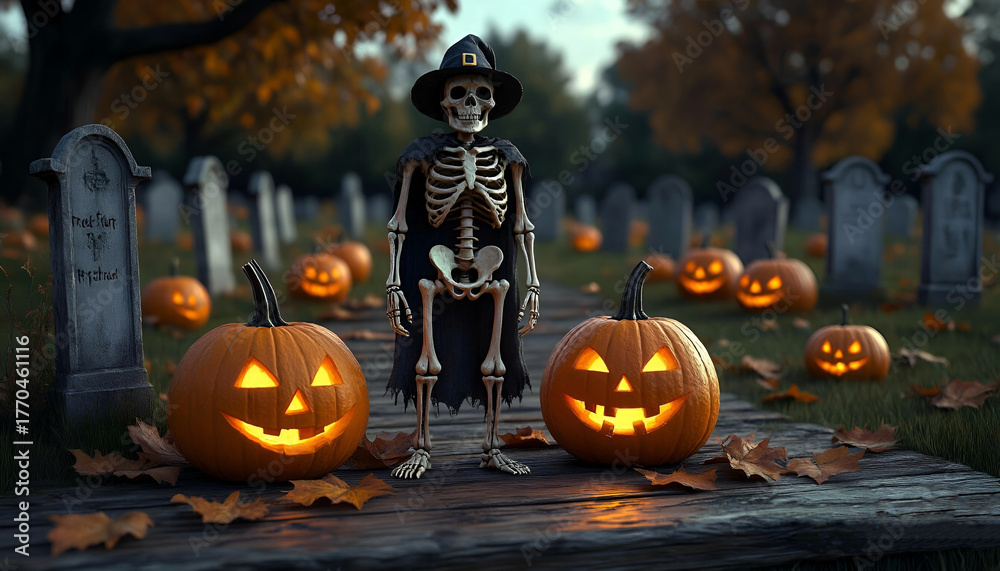 halloween skeleton jack o lantern with pumpkin Stock Photo Adobe Stock