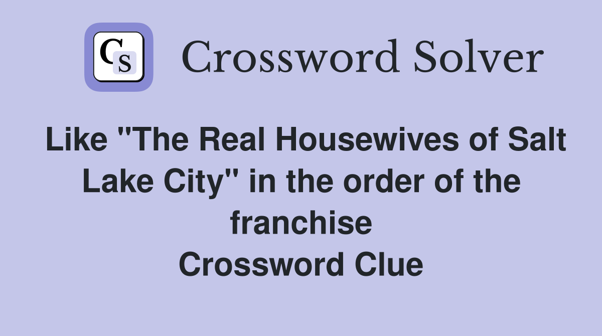 Like quot The Real Housewives of Salt Lake City quot in the order of the