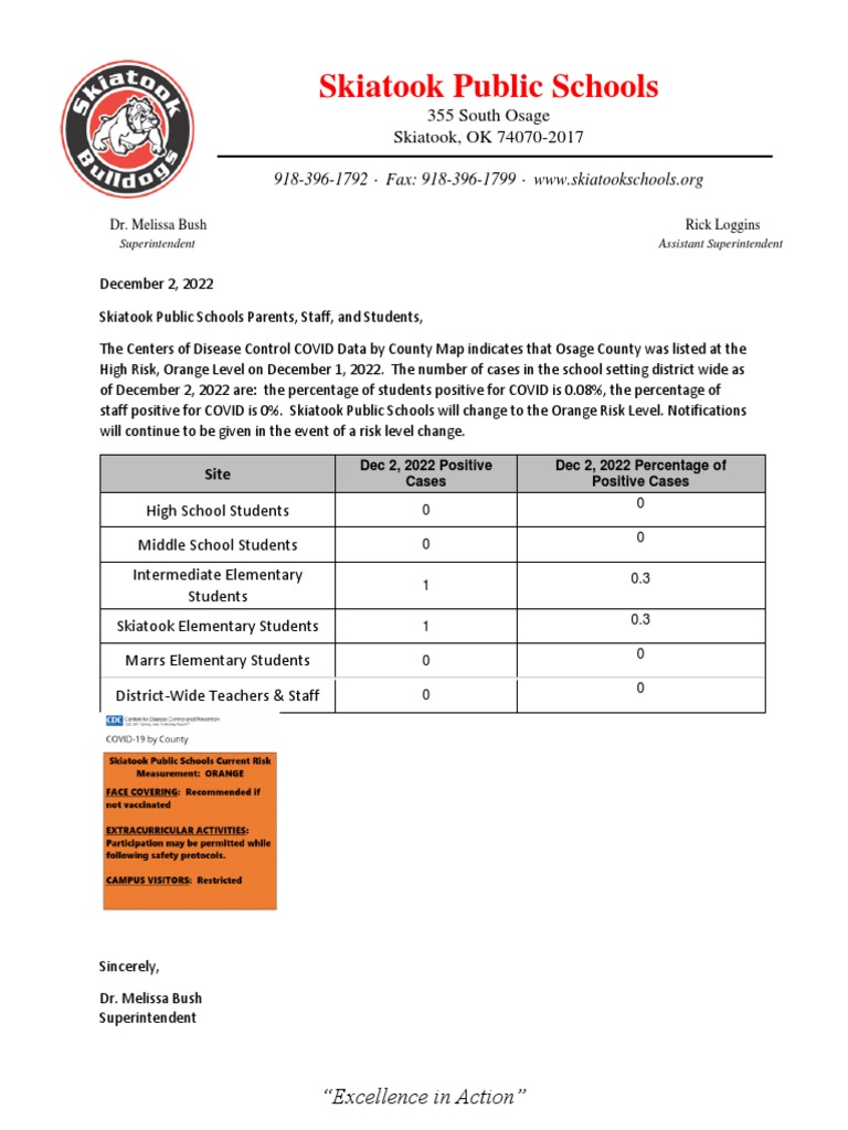 Skiatook Public Schools Dec 2 2022 COVID 19 Risk Level Statement PDF