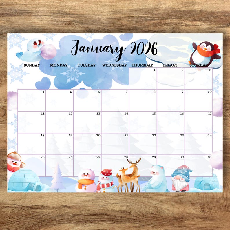 Editable Fillable January 2026 Calendar Winter Editable Calendar 2026