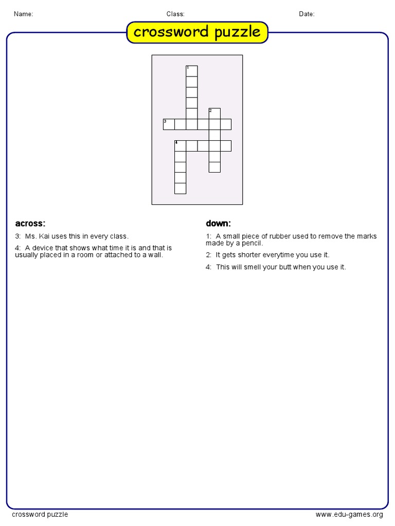 Printable Crossword Puzzles Grade 4 Printable JD