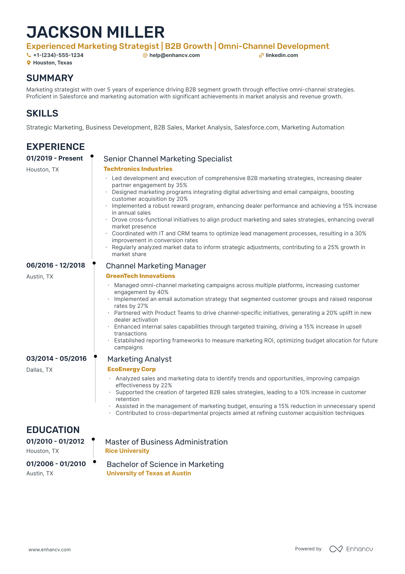 10 Channel Marketing Manager Resume Examples Guide for 2025