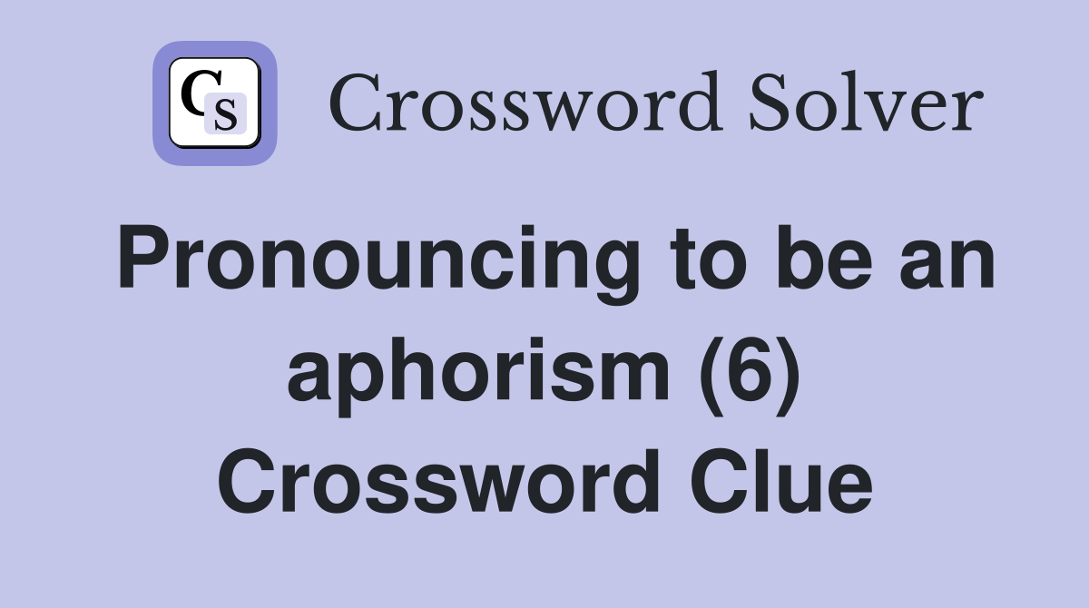 Pronouncing to be an aphorism (6) Crossword Clue Answers Crossword
