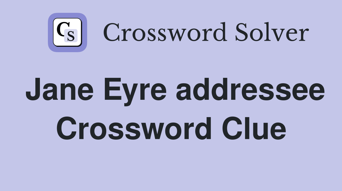 Jane Eyre addressee Crossword Clue Answers Crossword Solver