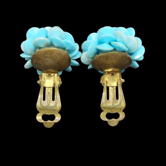 French 1950s era Sky Blue Cluster Beaded Clip on Earr Gem