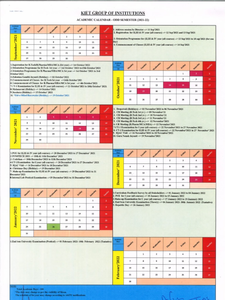 Academic Calendar 2021 22 Kiet (Odd Sem) PDF