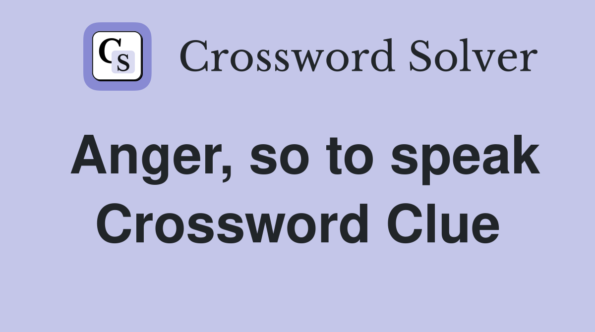 Anger so to speak Crossword Clue Answers Crossword Solver