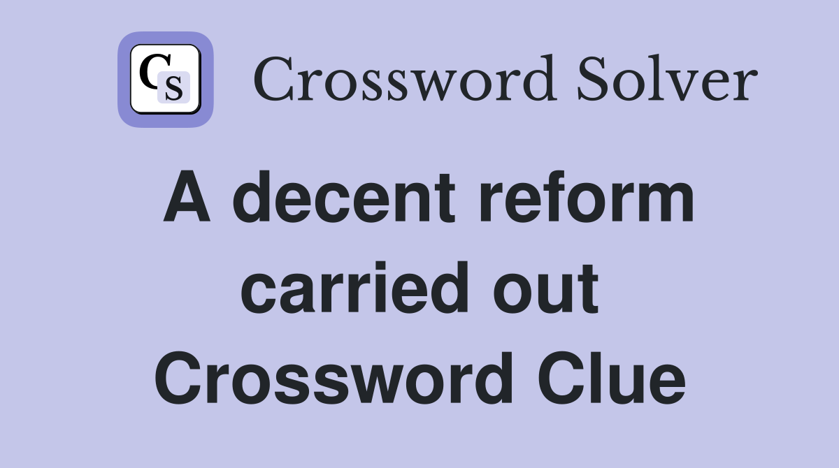 A decent reform carried out Crossword Clue Answers Crossword Solver