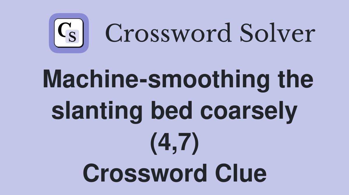 Machine smoothing the slanting bed coarsely (4 7) Crossword Clue