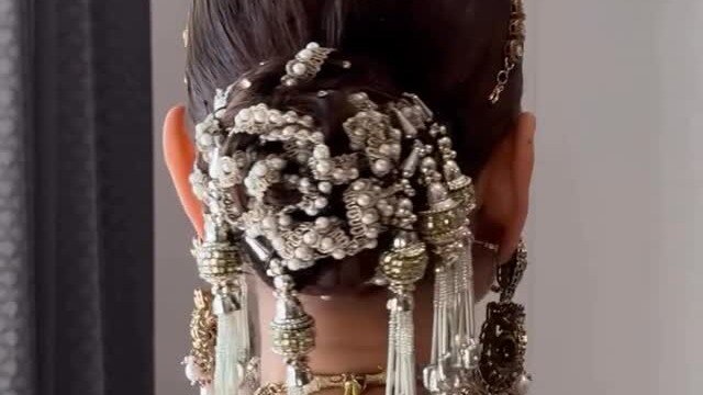 This pearl detailed sleek bridal bun is the modern classic hairstyle