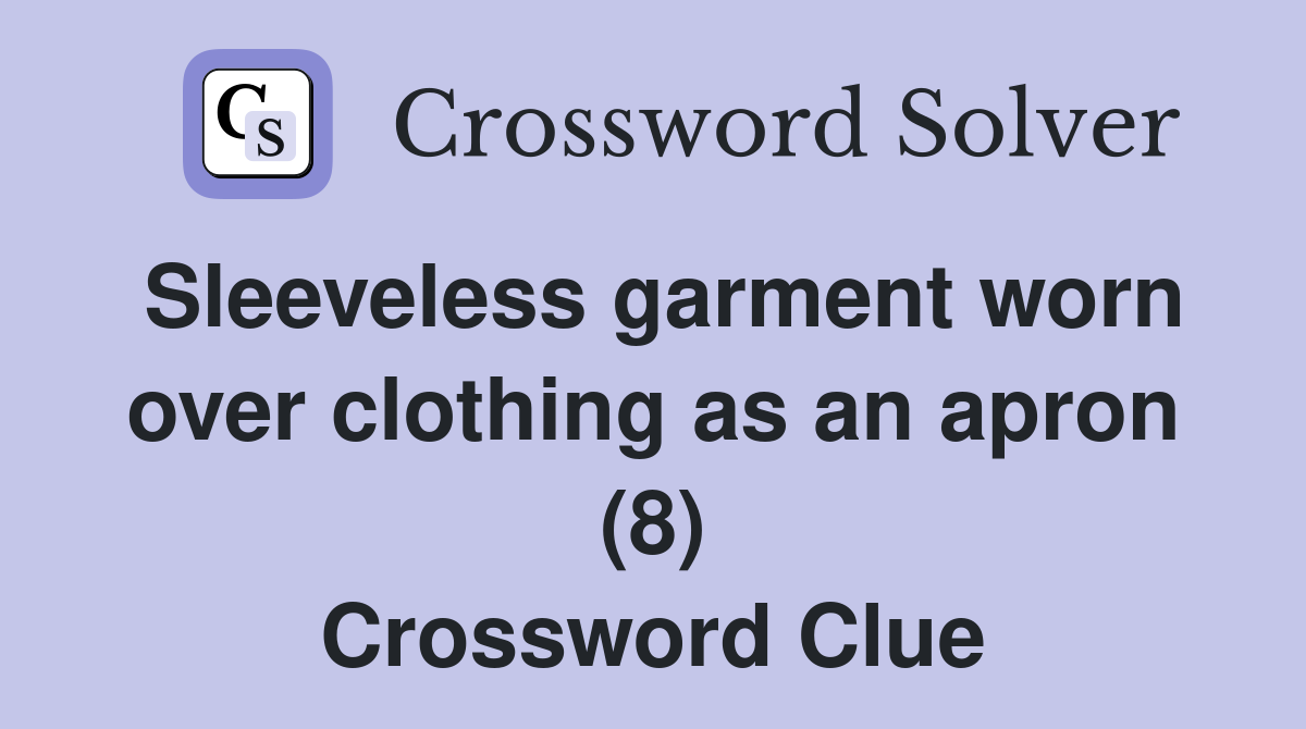 Sleeveless garment worn over clothing as an apron (8) Crossword Clue