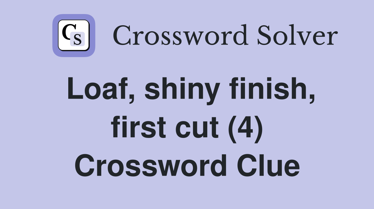 Loaf shiny finish first cut (4) Crossword Clue Answers Crossword