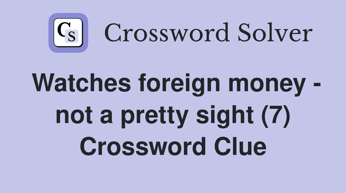 Watches foreign money not a pretty sight (7) Crossword Clue Answers